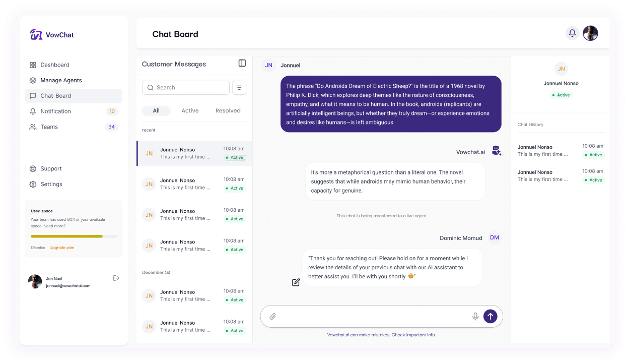 Discover how vowchat.ai can elevate your customer support with our cutting-edge features designed to enhance every interaction.